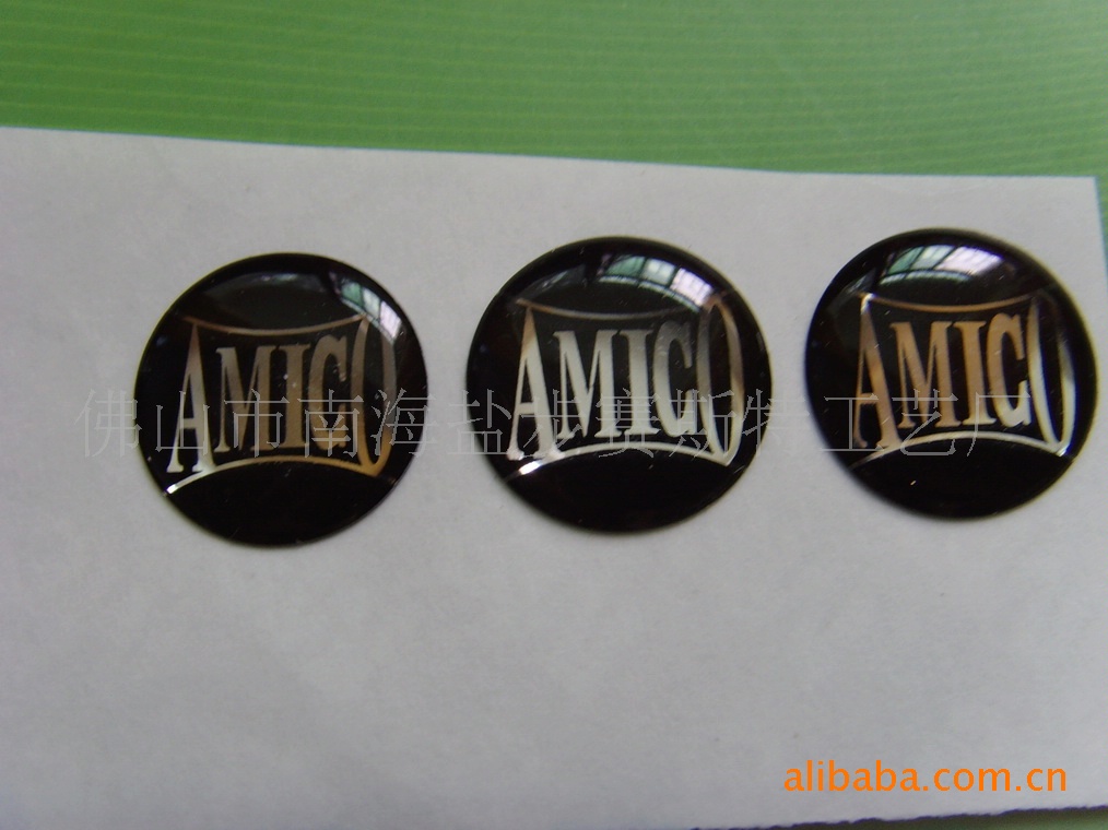 水晶滴胶标牌:做出来的效果是,表面透明,四边低中间高,后面有带自粘的不干胶,可印刷不同色的图,水晶滴胶可分为软滴胶和硬滴胶.可分为环保和不环保.可分为耐变黄胶和易变黄胶.耐变黄胶的透明度高.无气泡,价格高.粘性相当强,主要适合高端产品,贴在产品上很难撕下来,易变黄胶的价格相对较低.但胶比较快变黄.变硬.粘性差点