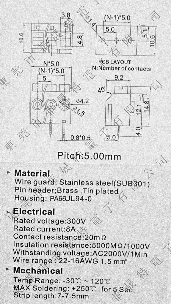 规格:5.0mm间距