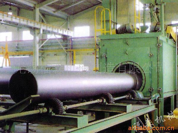 本机是辊道送料的大、中型管径钢管及圆柱件抛丸清理设备。主要利用高效抛丸器抛出的高速弹丸流束打击钢管表面上的氧化皮、锈层及其杂物,使之获得精细光亮表面,提高工件表面的抗拉和抗压强度,并具有一定表面粗糙度,为其表面涂漆保护增加附着力,有利于提高钢管涂饰质量,达到防腐、护管、延长钢管使用寿命之目的。 本机是专用于Φ630mm管径钢管外壁抛丸清理的首选设备。 工作原理 本机为辊道通过式抛丸清理机。将钢管放在可调速的进料输送辊道上,此辊道上的托轮根据管径不同,设定安装位置及输送速度,使钢管形成旋转前进。进入清理室抛射区的钢管,其周身受到来自不同坐标方位的强力高效抛丸器所抛出密集弹丸的打击与磨擦,使之其上的氧化皮、锈层及其污物迅速脱落,钢管表面获得一定粗糙度的光洁表面。在抛丸清理过程中,撒落下来的丸尘混合物经室体漏斗、纵、横向螺旋输送器汇集入提升机下部,再提升到机器上部的分离器里,分离后的纯净弹丸落入分离器的料斗内,供抛丸循环使用,抛丸清理中产生的尘埃,由抽风管送向除尘系统,经该系统处理后,颗粒状尘埃被捕捉收集,净化处理后的净气排入到大气中。 |