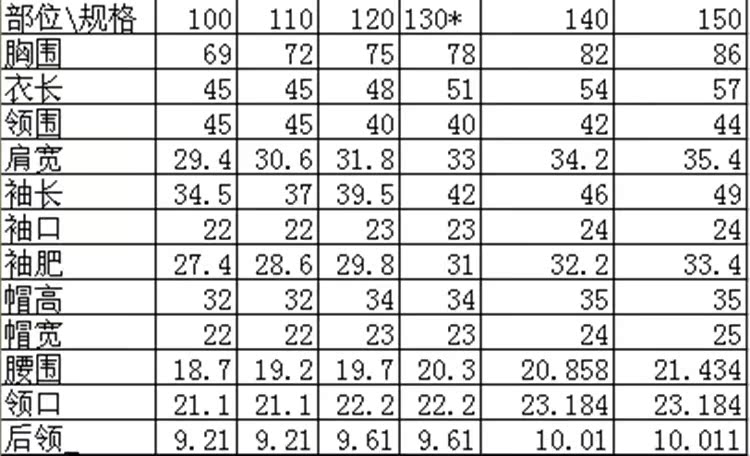 尺码:100 110 120 130