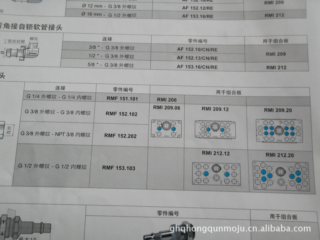四:RMI216.12=12个接头(6个回路)通径16mm,接头分为带回路截止阀或不带回路截止阀。也可来样加工。