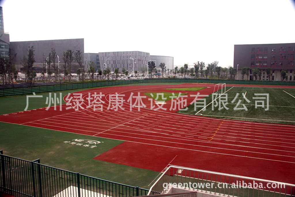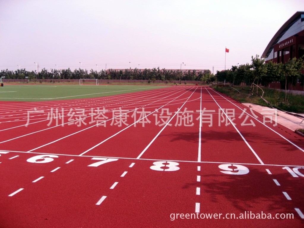 名称:混合型塑胶跑道采用国际田联认可的混合结构,面层为PU颗粒或EPDM耐候性环保彩色颗粒,母体是全PU掺合部分橡胶颗粒。施工工艺简单,符合国际赛事标准。标准厚度13mm。