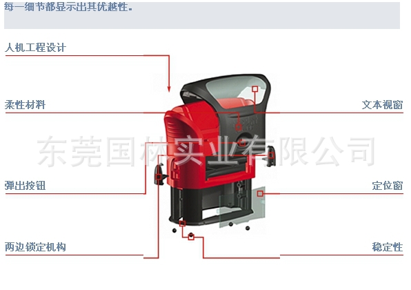 3、成品外形美观、结构更人性化,在优雅而人性化的外壳下,它拥有平顺而柔软的滑动,更准确无误地盖出清晰的印迹,让您的工作更完美。