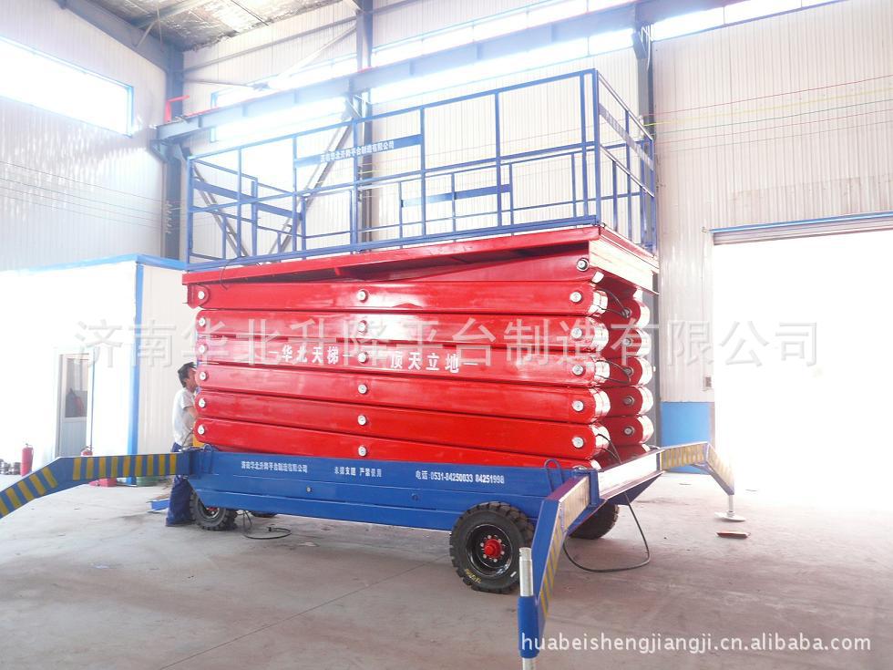 移动式液压升降机有人工移动式液压升降机、电动移动式液压升降机,另备有手压泵,供停电时使用,具有移动灵活、升降平稳、操作方便、载重量大等特点。升降动力分为220V或380V电源,采用国外和国产液压泵站。