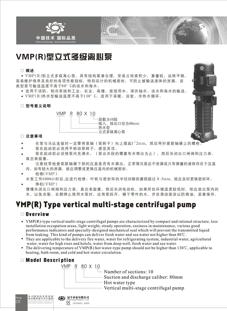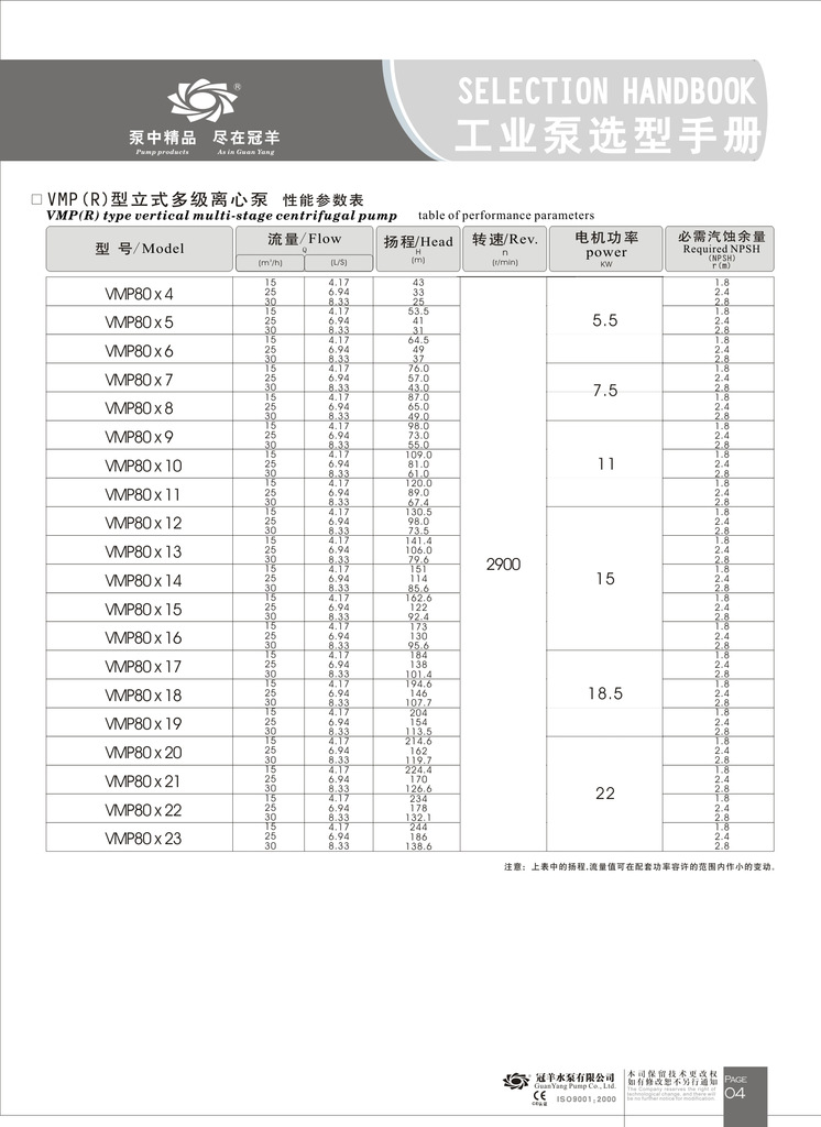 广东水泵 羊城供水 冠羊VMP40X4立式多级离心泵 生活增压泵