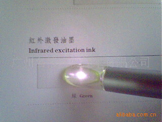 印刷后隐形无色,经过红外光照射可以激发相应的颜色,有红、绿、兰、黄、白,绿色效果最好。