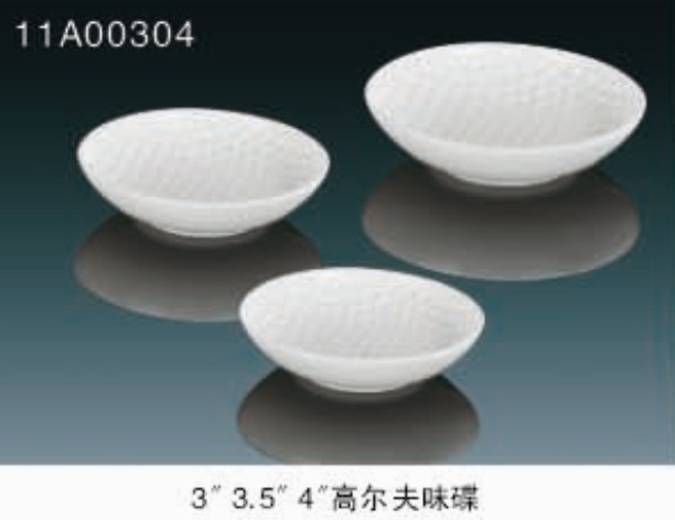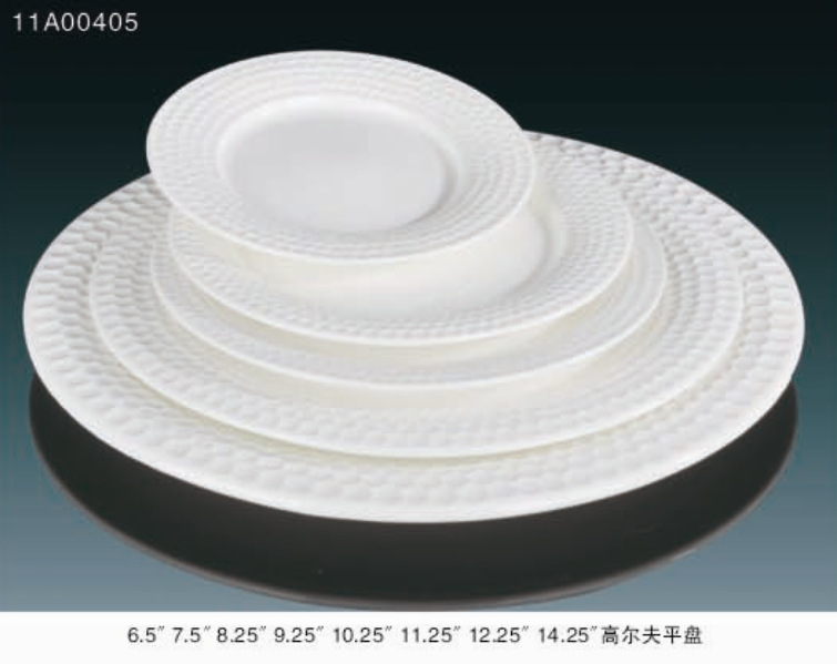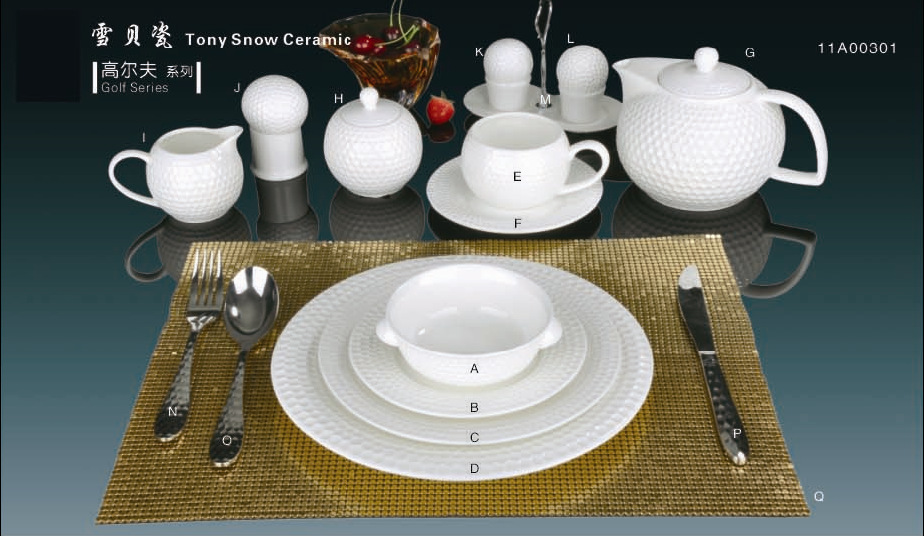 | A:4"高尔夫双耳汤盅 | B:6"高尔夫汤盅底碟 | C:8.25"高尔夫平盘 | D:10.25"高尔夫平盘 |