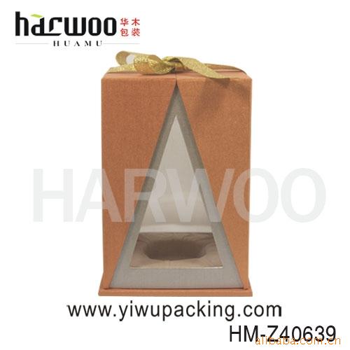米黄色的特种纸色和黄丝带制做的蝴蝶结是本款香水包装盒的的亮点,同时香水盒两侧也为客户提供了可以展示香水的PVC透明窗,里面还采用与之相配的绒布融为一体。欢迎前来定购。