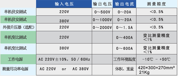 5.伏安特性试验输出电压0-1000V,电流0-20A;采用外接升压器输出电压0-2000V、电流0-1.5A,可做500KV等级1A的互感器伏安特性试验。