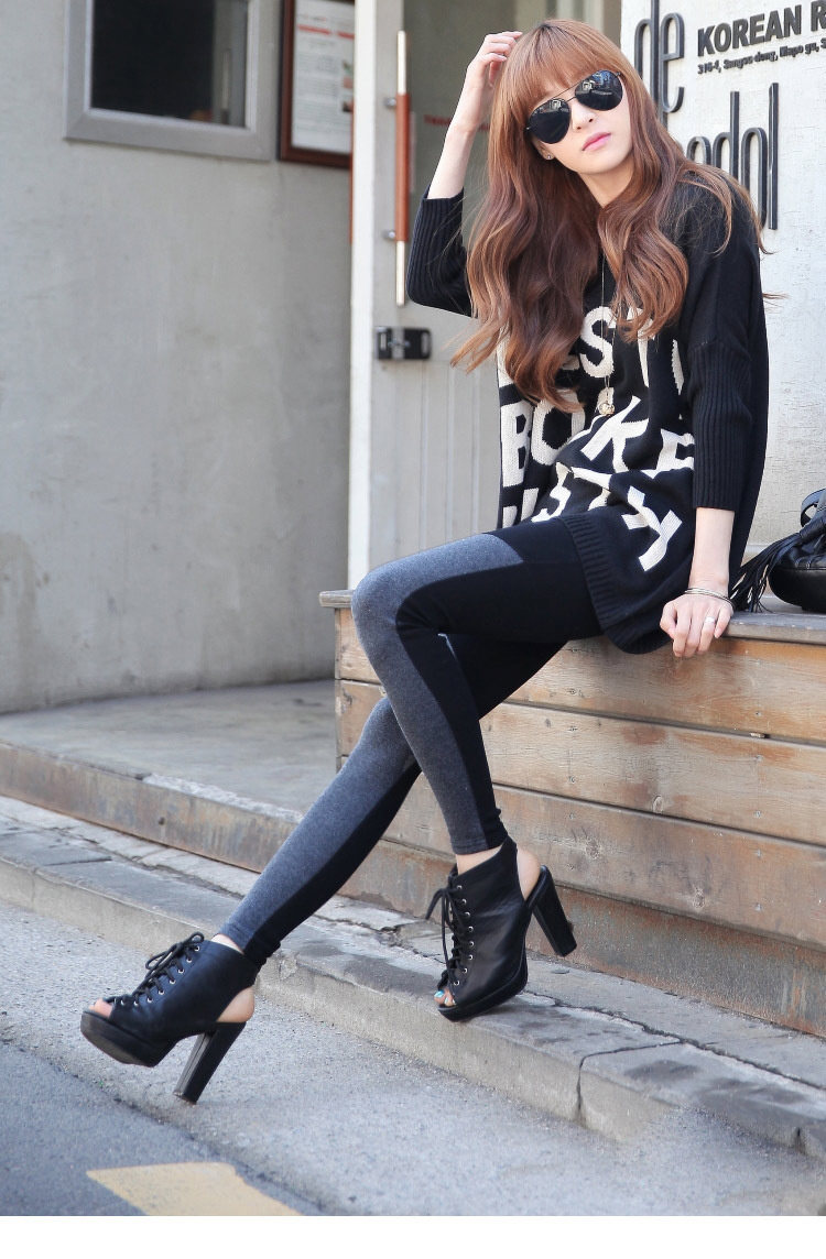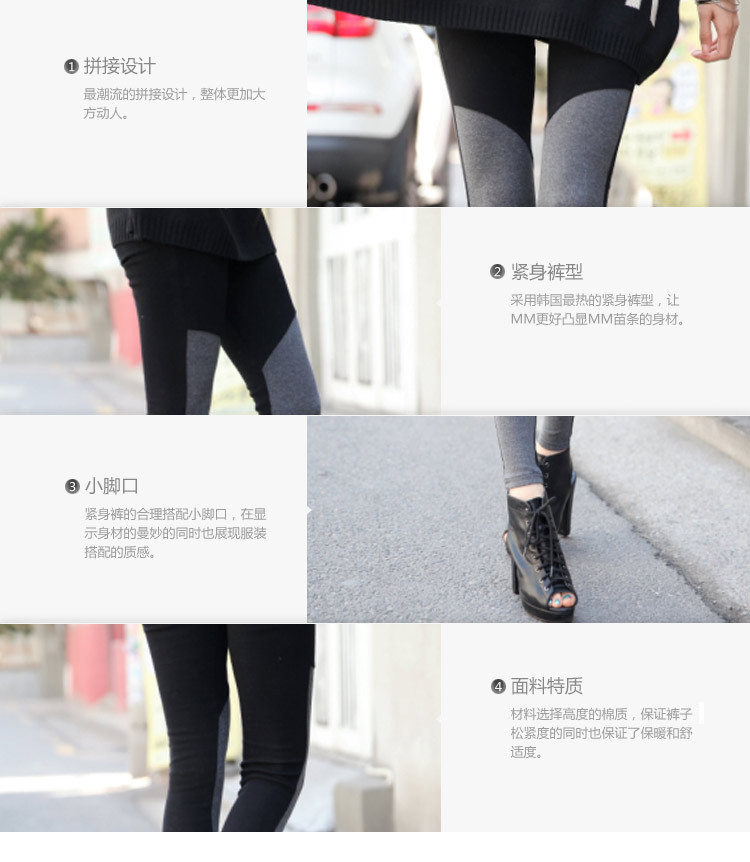 这款做工非常好,版型很正,非常经典个性的设计,很酷很有型,春天这种款式的拼接打底裤绝对必备的哦,很实用
