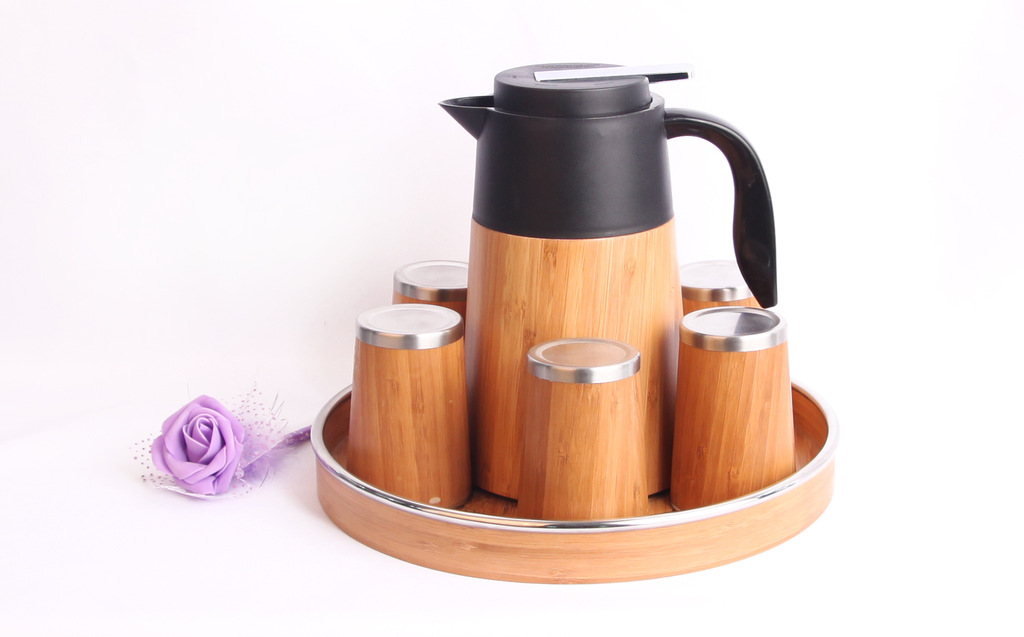 HH12-314-2 竹制保温壶套装系列之竹制时尚茶杯茶具套装 厂家批发