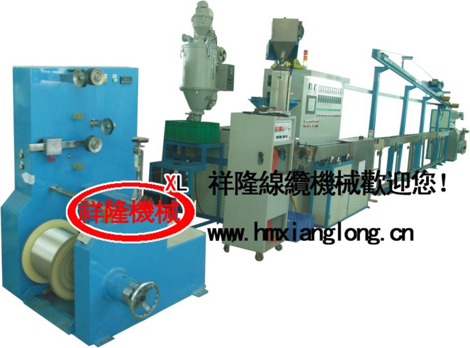 【组成部分】﹕放线架、整直台、押出主机、主控箱、印字机、水槽、牵引机、储线架、收线机等组成。可选配主动式放线、铜线预热器、PLC电脑全程控制、镭射测径仪、高频火花机。
