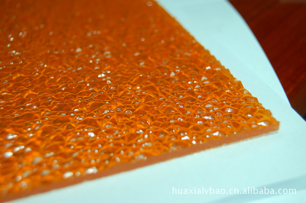 PC耐力板、阳光板的特点: ○透光性:透光性能好(透光率达80%)。在阳光下曝晒不会产生黄变、雾化、透光不佳。 ○耐候性:表面有防紫外线的共挤层,可防止太阳光紫外线引起的树脂疲劳变黄。表面共挤层具有化学键吸收紫外线并转化为可见光。对植物光合作用有良好的稳定效果。 ○抗冲击:PC耐力板的冲击强度是普通玻璃的250-300倍,是亚克力板材的20-30倍,是钢化玻璃的2-5倍,几乎没有断裂的危险性,有“不破玻璃”和“响钢”之美称,是防弹玻璃的优良材料。 ○阻燃性:据国家GB8624-97测试属阻燃B1级,无火滴、无毒气。 ○耐温性:在摄氏-40℃至+120℃温度范围内不会引起变形等品质劣化。 ○轻便性:重量轻,便于搬运,钻孔。截断安装时,不易断裂,而且可直接冷弯,施工简便加工良好。 ○隔音性:隔音效果佳,在国际上是高速公路隔音屏障的首选材料。