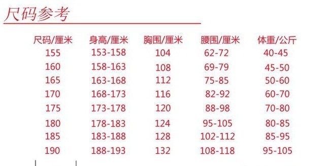 S、M、L、XL、XXL
