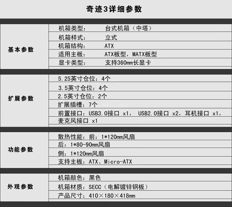 先马奇迹3机箱外观时尚大方,散热能力出色,机箱前端配备的USB3.0接口带来了高速的数据传输,适合经常拷贝文件的消费者购买。