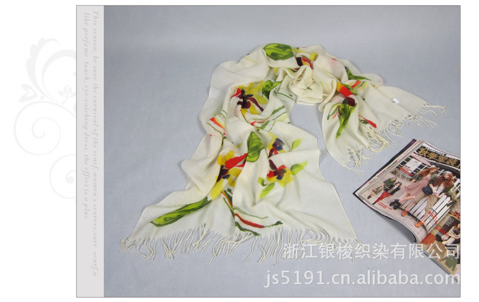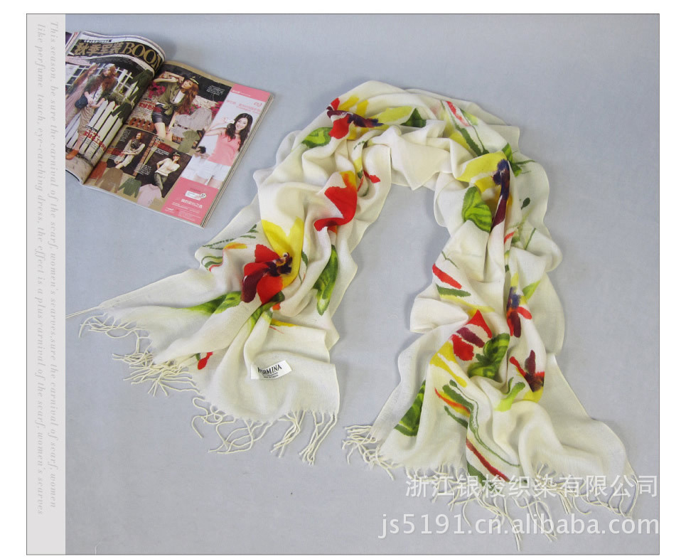 厂家直销 羊毛围巾批发 女款 100%高档羊毛 手绘图案 精品围巾