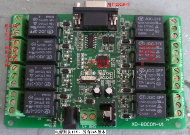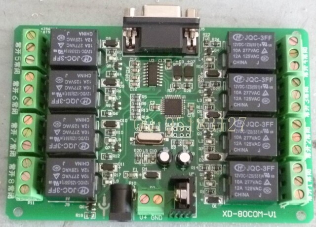 8个宏发继电器(可选进口欧姆龙继电器),触点电流10A,高性能单片机,串口控制,支持MODBUS-RTU协议,支持自定义的简单的总线协议,赠送VB6.0,VC6.0上位机控制软件和源代码,为提供信誉成本价出售。绝对超值!!