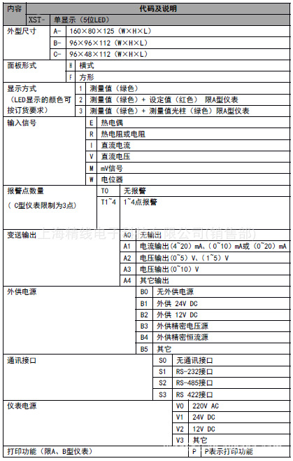 输入信号类型:热电阻(Pt100、Pt1000),热电偶(K、S、R、B、N、E、J、T),直流电流,直流电压,直流mV;