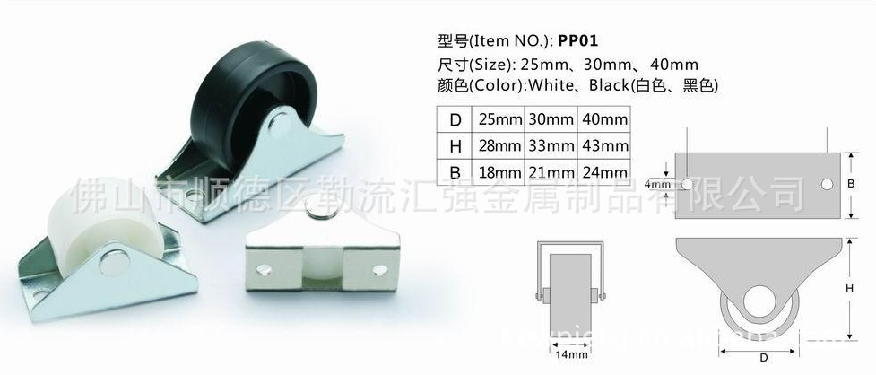 产品名称:家具轮 万向轮 脚轮 PP轮 型号:PP01 名称:PP轮,脚轮 材质:PP 铁 尺寸:D:25mm 30mm 40mm 28mm 33mm 43mm 18mm 21mm 24mm 表面处理:PP 黑色 白色 铁 镀锌 包装:1000只/箱 |