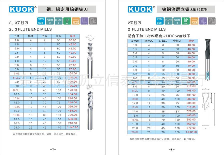 1.初次使用本刀具时,进给速度按照数据的50%度切削,切削状况稳定后再将进给速度逐渐调整。