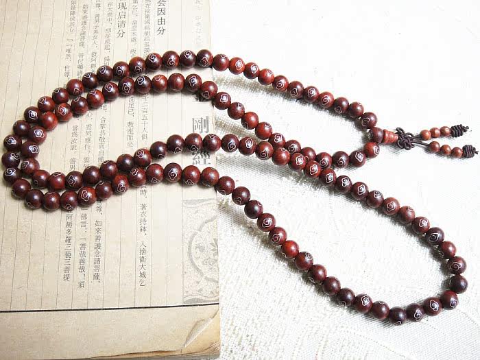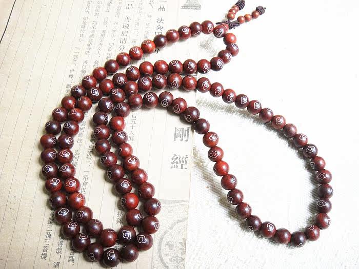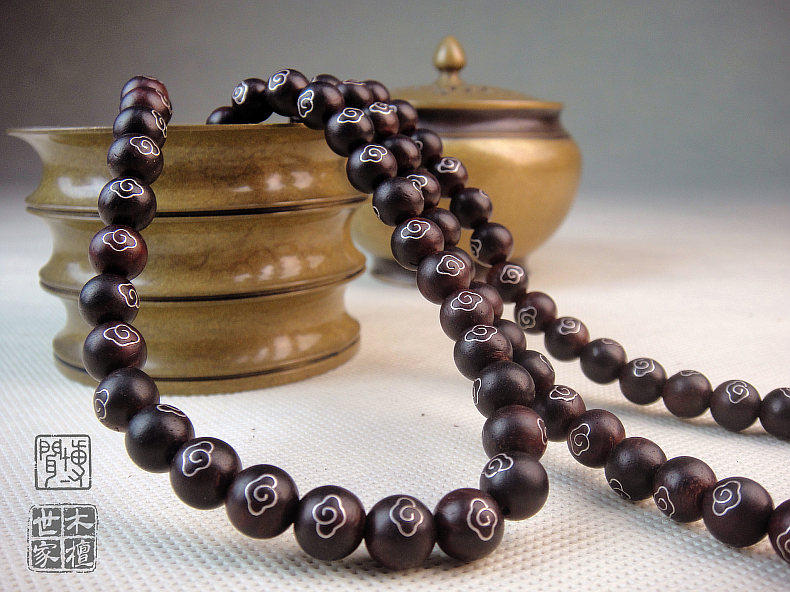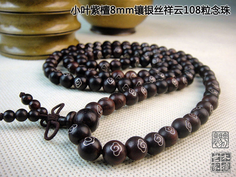 小叶紫檀佛珠加银丝工艺 108颗8mm念珠