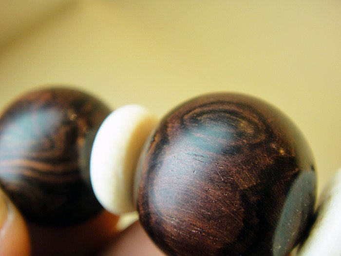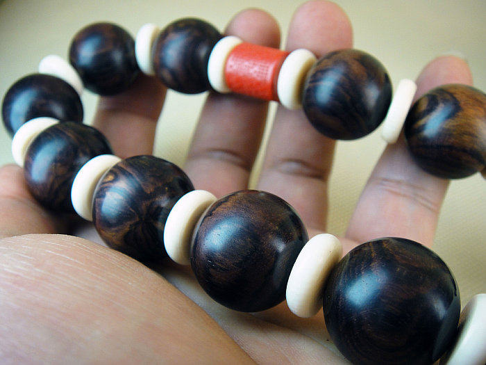 鉴别黄花梨手串其次就是看海南黄花梨手串的比重和手感,用手掂量黄花梨手串,看有没有分量,不轻飘,手感温润如玉,真正的黄花梨的成品触起来不会有戳阻手的感觉。还有一点必须要讲,就是关于海黄沉不沉水,海南黄花黎气干密度为0.82-0.94/cm3,仅有少数重的料或成品入水即沉,多数都会有点浮出水面,所以,不沉水就不是好料这样理解也是错误的。