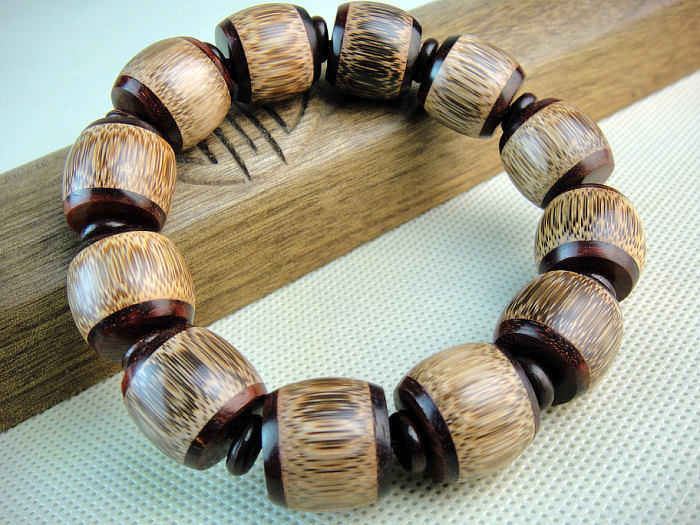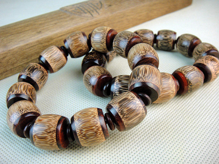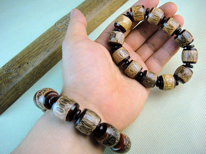 紫檀少有大料,俗话说“十檀九空”,故紫檀木比较珍贵。古人云 “人分三六九等,木分花梨紫檀。”又因为印小叶紫檀的色泽和花纹美丽细腻常为皇室所用,同时又可称为“帝王之木”, 紫檀木佛珠手链体现王者之风。
