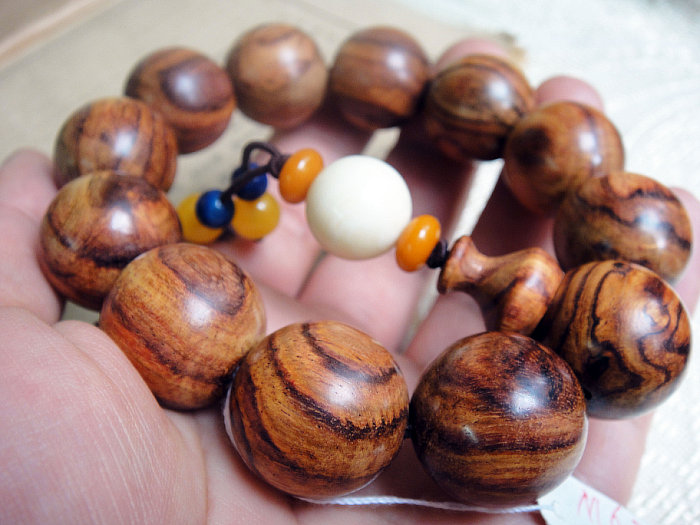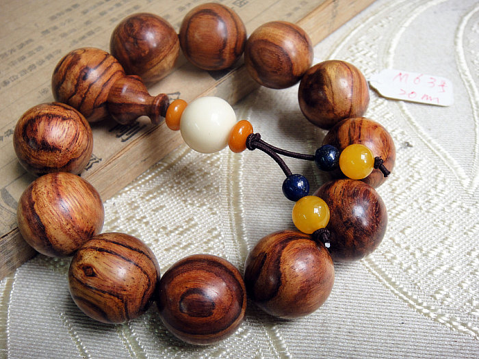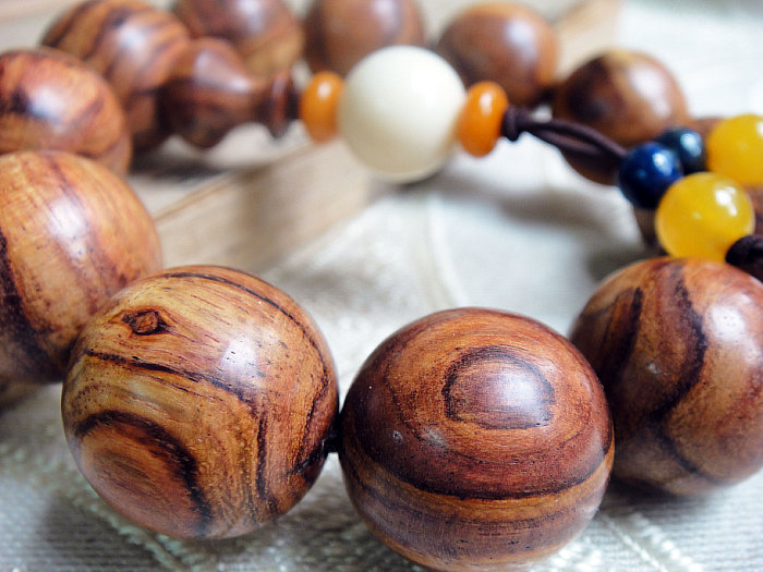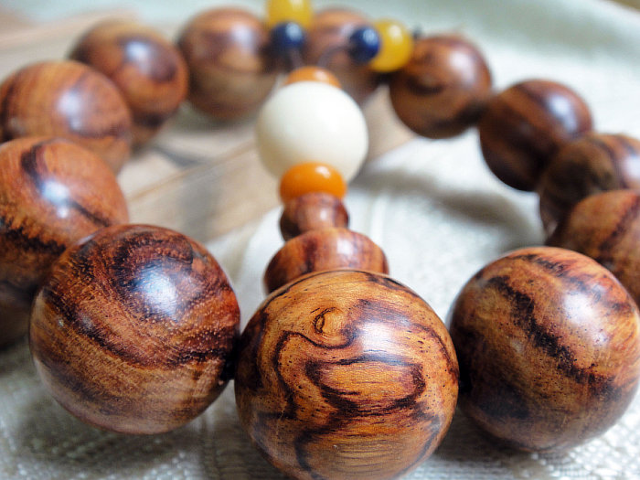 黄花梨学名降香黄檀,以产自中国海南省的黄花梨为上等,由于前期掠夺性开发,海南黄花梨已经呈现枯竭态势,目前市场上常见的黄花梨品种多产自越南、缅甸一带,但纹理层次较乱,其价值远不及海南黄花梨。所以用海南黄花梨制作的佛珠手链,被广大收藏家视为上品,当然价值不菲。