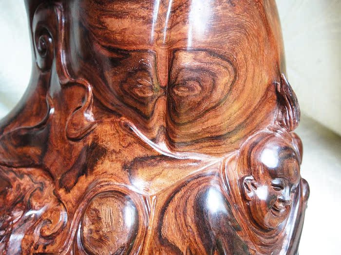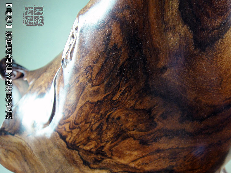 4.手感:因海南黄花梨气干密度高,故手感有沉甸甸的感觉。油性较大且光泽度强,光滑如玉。在自然光下,打磨后的黄花梨有半透明的感觉,除紫檀外,一般木材是没有这种效果的。
