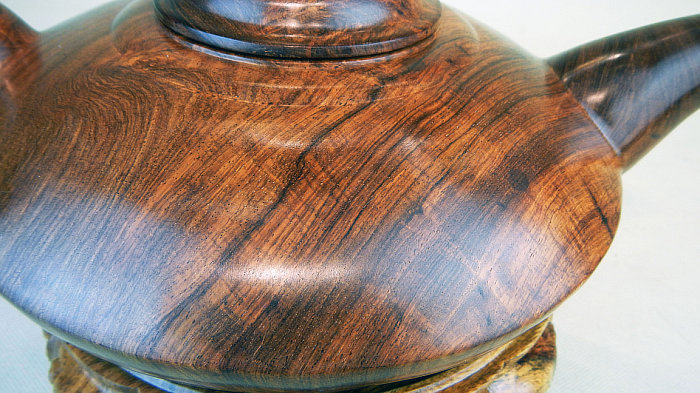 4.手感:因海南黄花梨气干密度高,故手感有沉甸甸的感觉。油性较大且光泽度强,光滑如玉。在自然光下,打磨后的黄花梨有半透明的感觉,除紫檀外,一般木材是没有这种效果的。