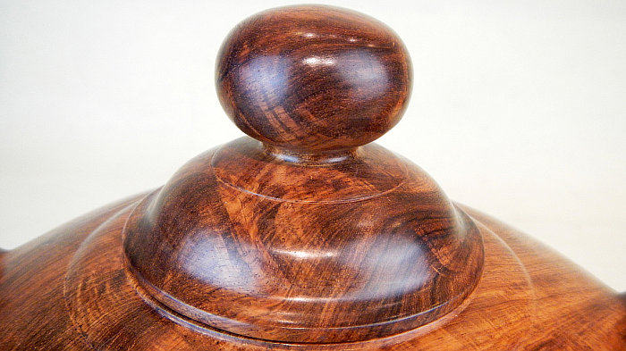 纹理漂亮,品相,它所呈现的美已经给了我们视觉上很大的震撼,其表面布满了山水纹、鬼脸纹等,非常漂亮,经细抛光后手感非常顺滑,整体造型非常稳重而大气,充分的体现了海南黄花梨的特色。