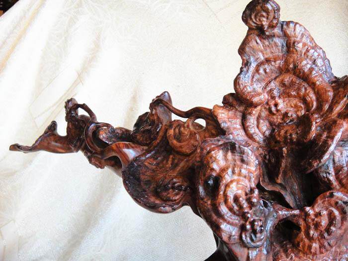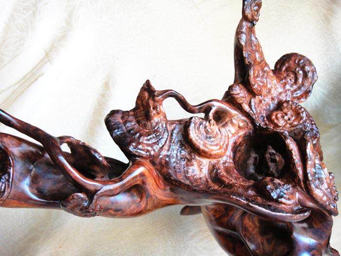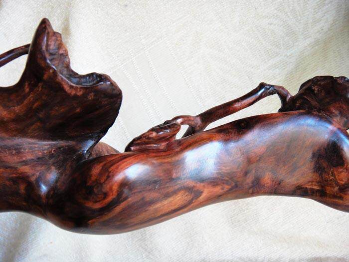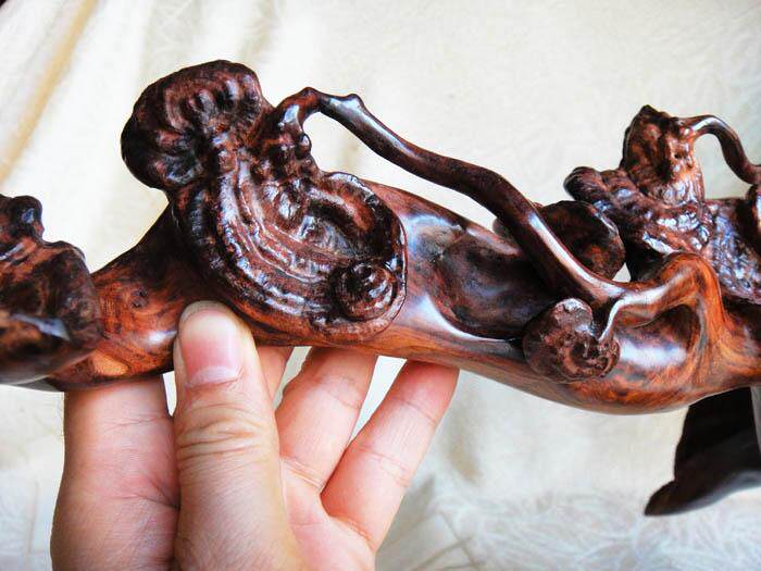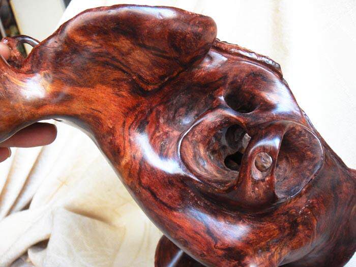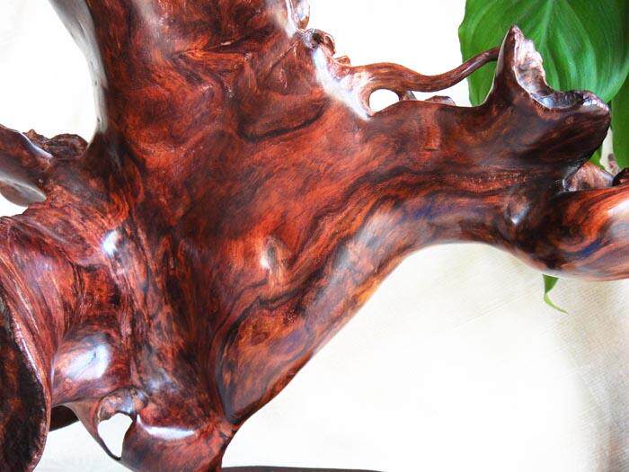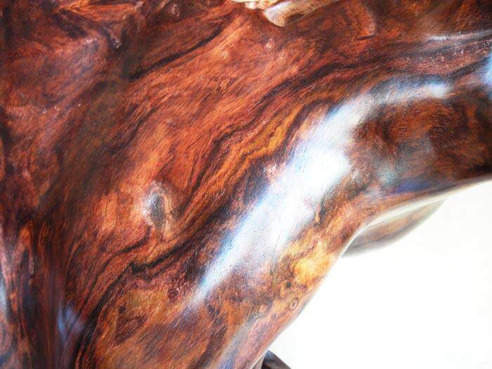 4.手感:因海南黄花梨气干密度高,故手感有沉甸甸的感觉。油性较大且光泽度强,光滑如玉。在自然光下,打磨后的黄花梨有半透明的感觉,除紫檀外,一般木材是没有这种效果的。