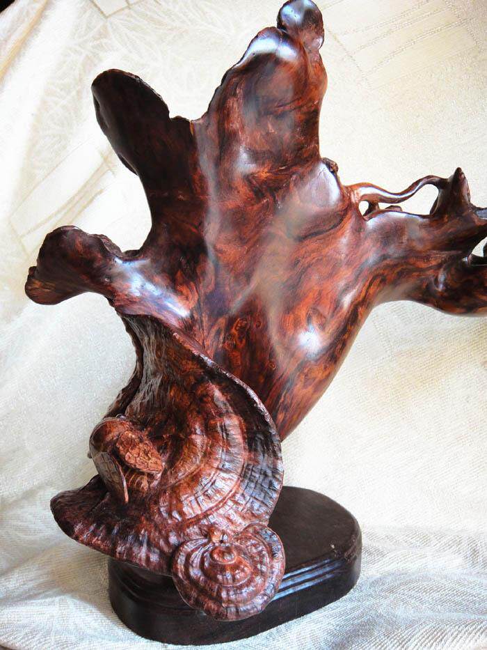 2.纹理:常带深褐色或黑色条纹,条纹清晰,所组成的图案变化多端,特别是结巴处呈现美丽的花纹称(鬼脸)。