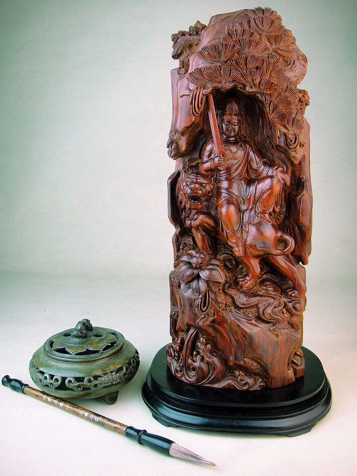 紫檀五台山文殊菩萨摆件
