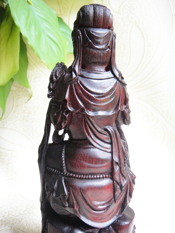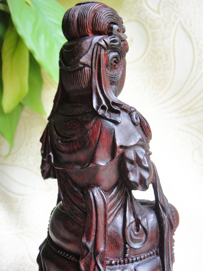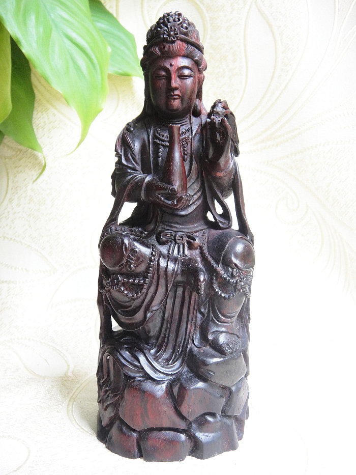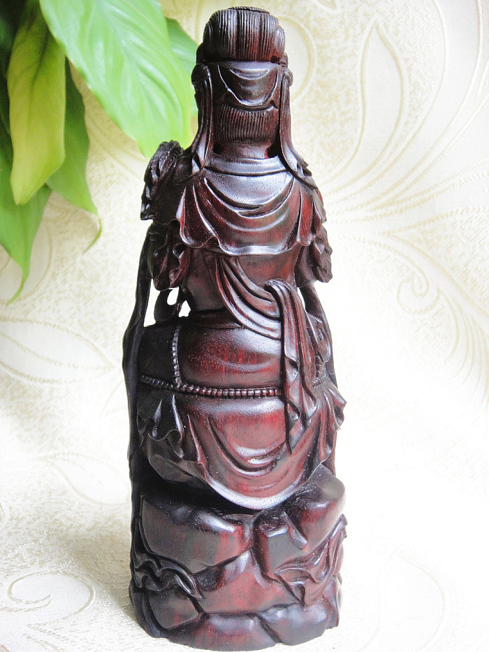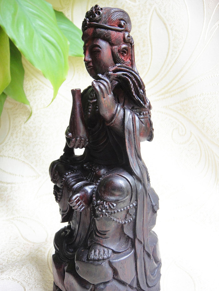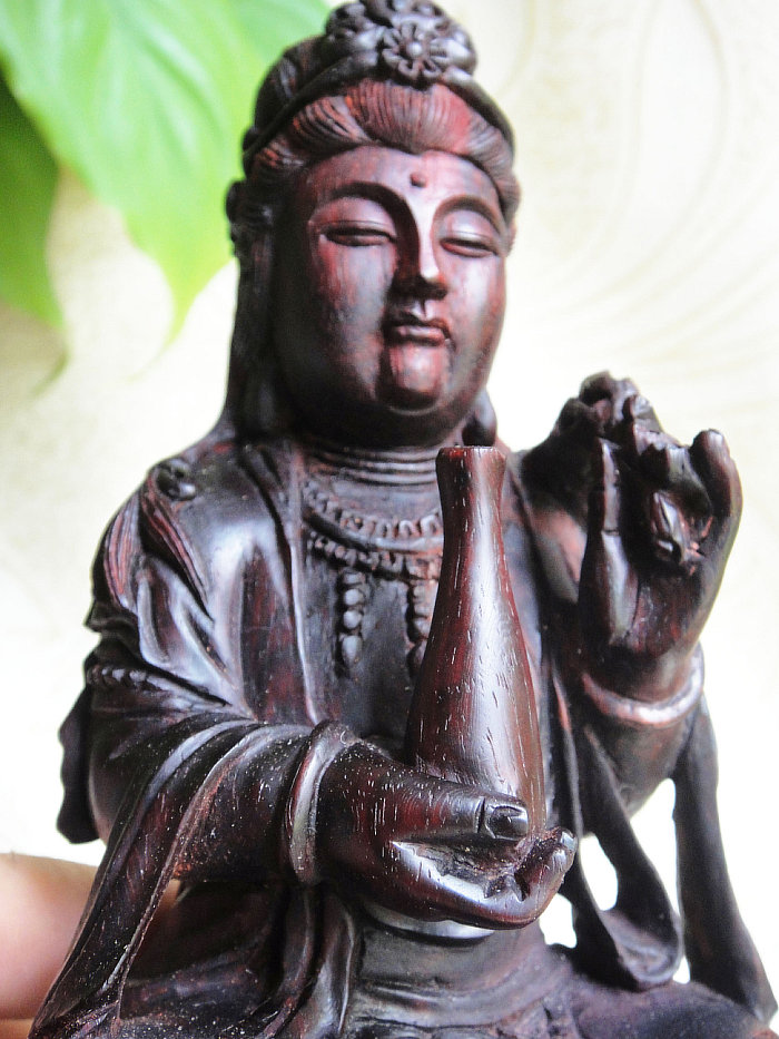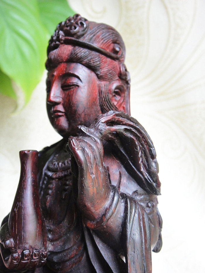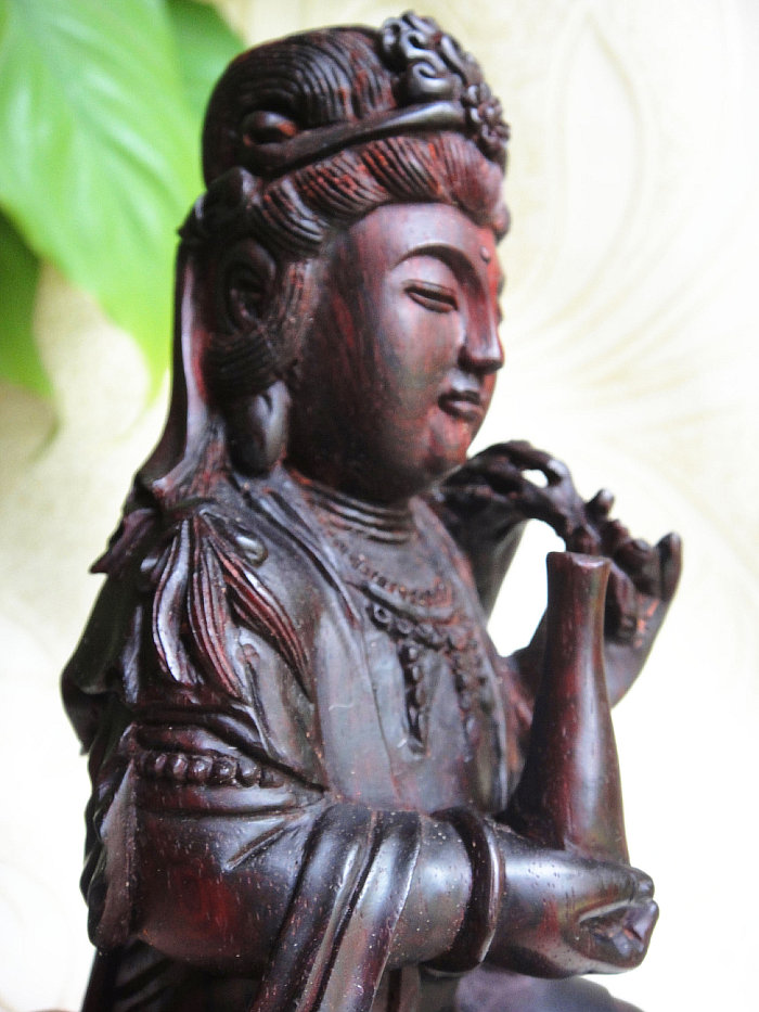 印度小叶紫檀木雕件杨枝甘露观世音