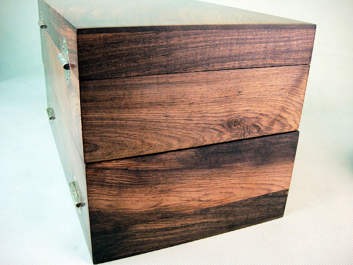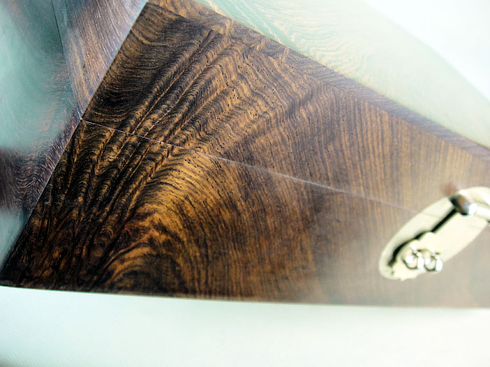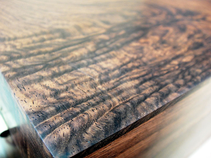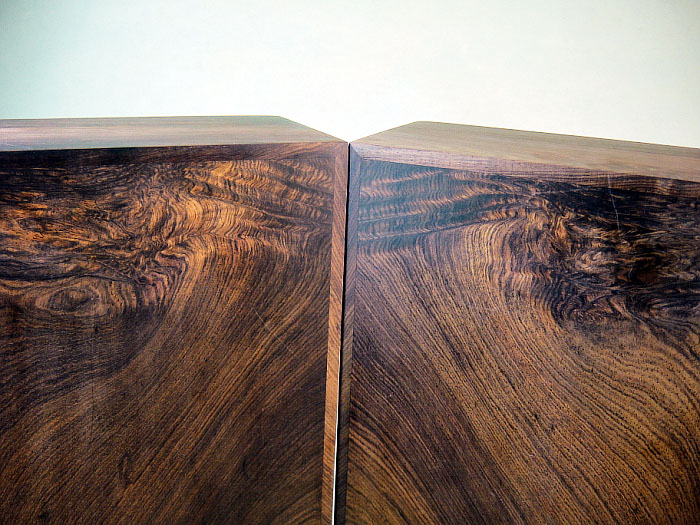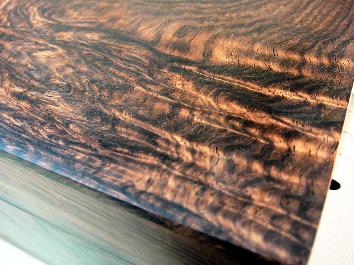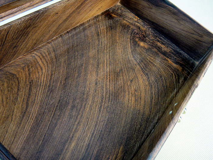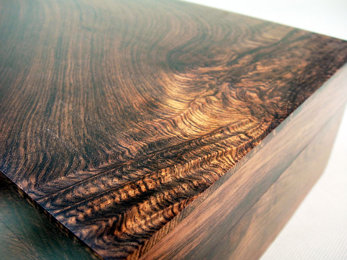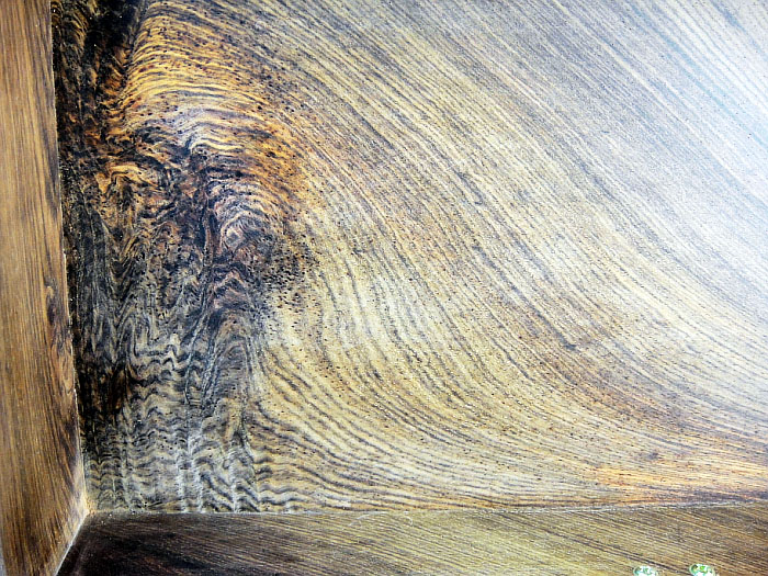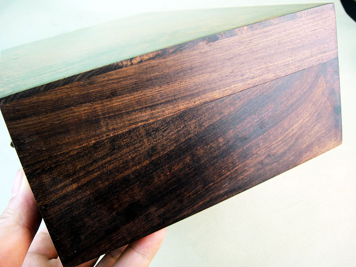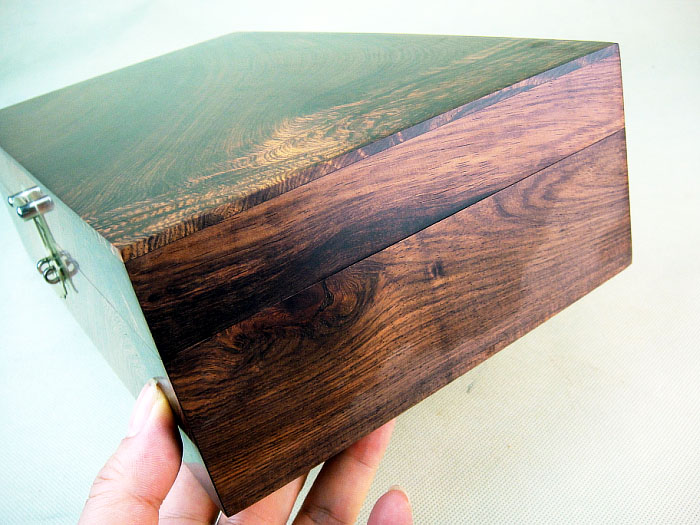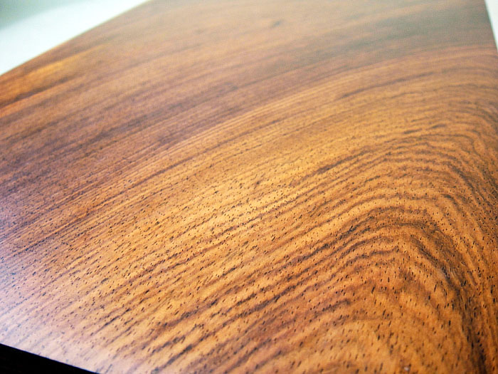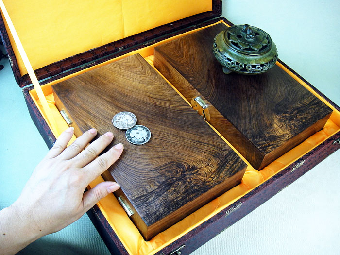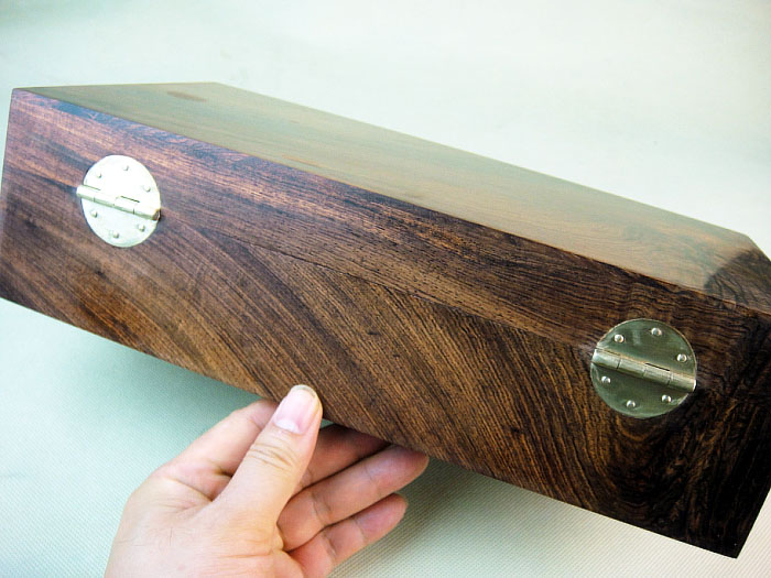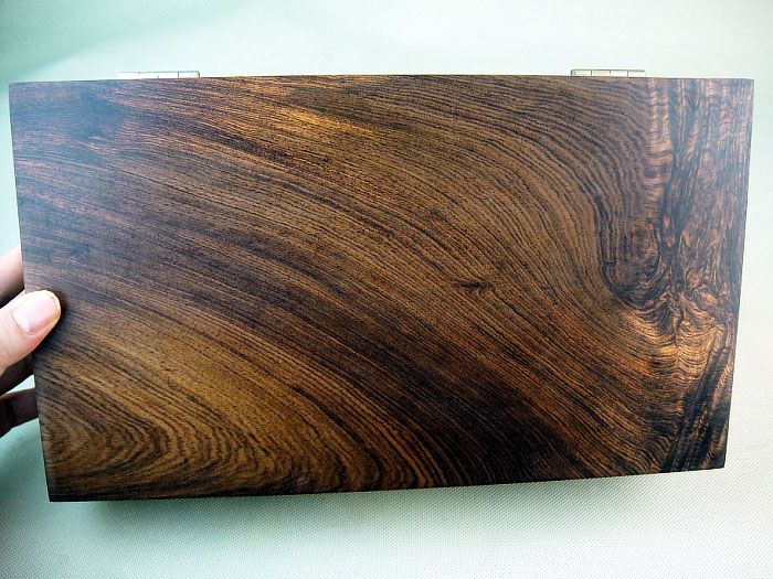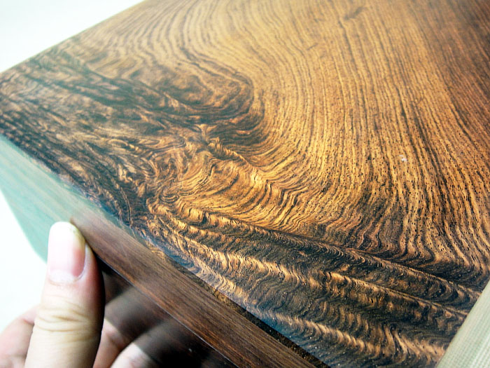 4.手感:因海南黄花梨气干密度高,故手感有沉甸甸的感觉。油性较大且光泽度强,光滑如玉。在自然光下,打磨后的黄花梨有半透明的感觉,除紫檀外,一般木材是没有这种效果的。