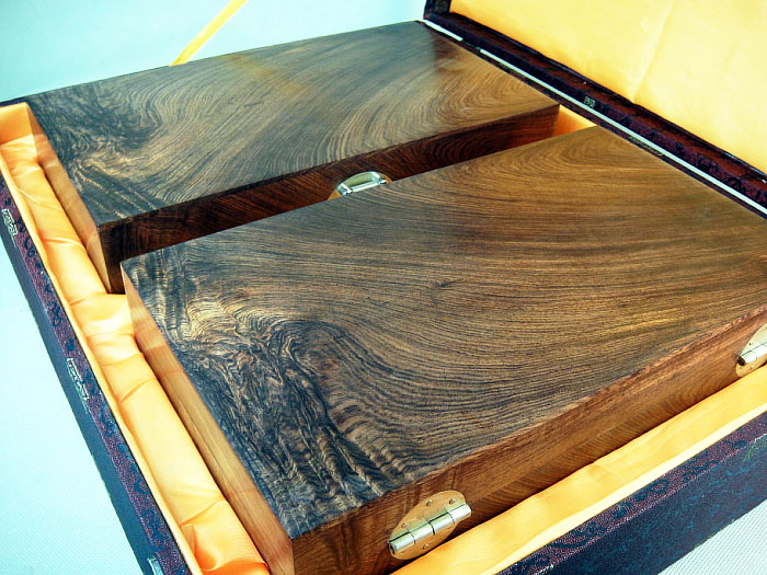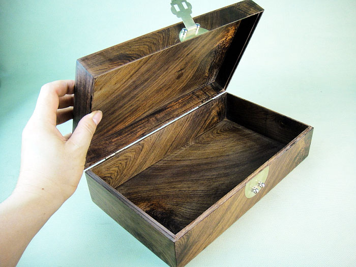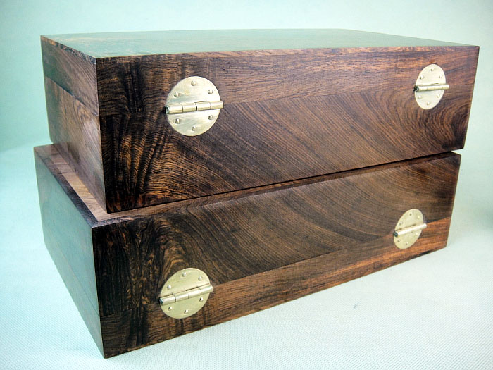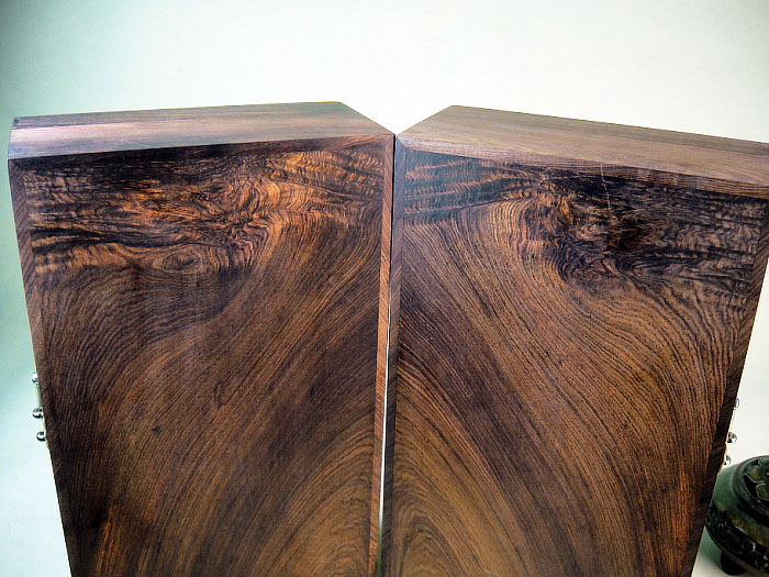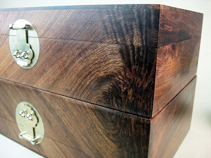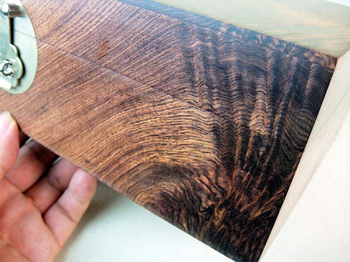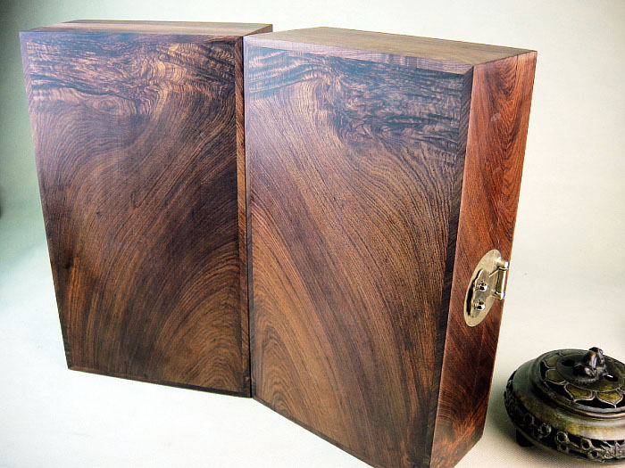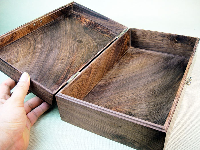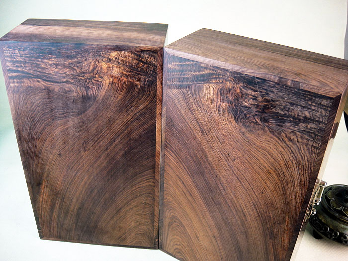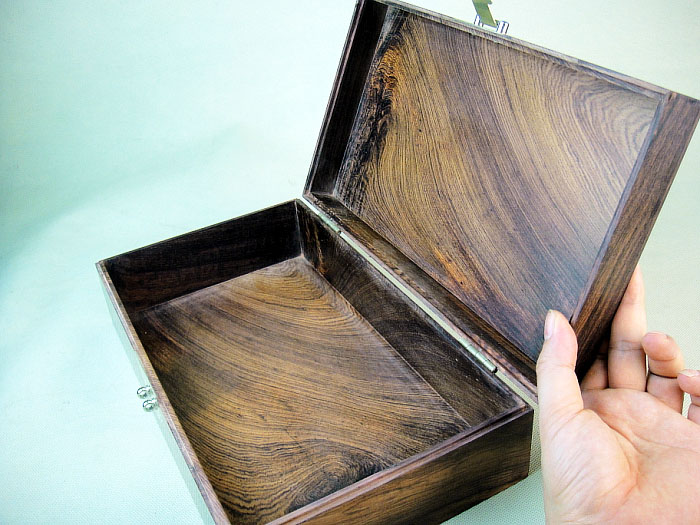 除主面板外,两盒的前侧板也是同料对称图案的。