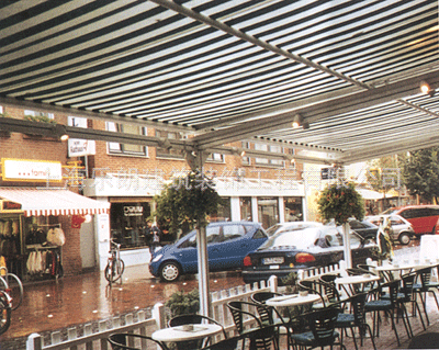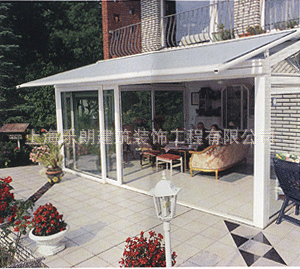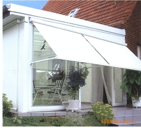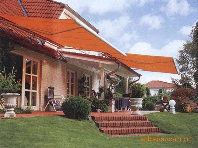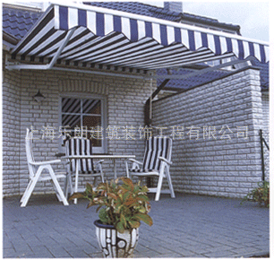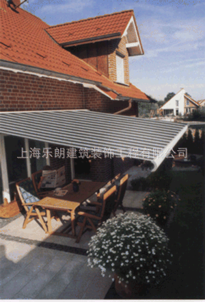 遮阳棚分为普通伸缩式、盒装伸缩式和天幕式。