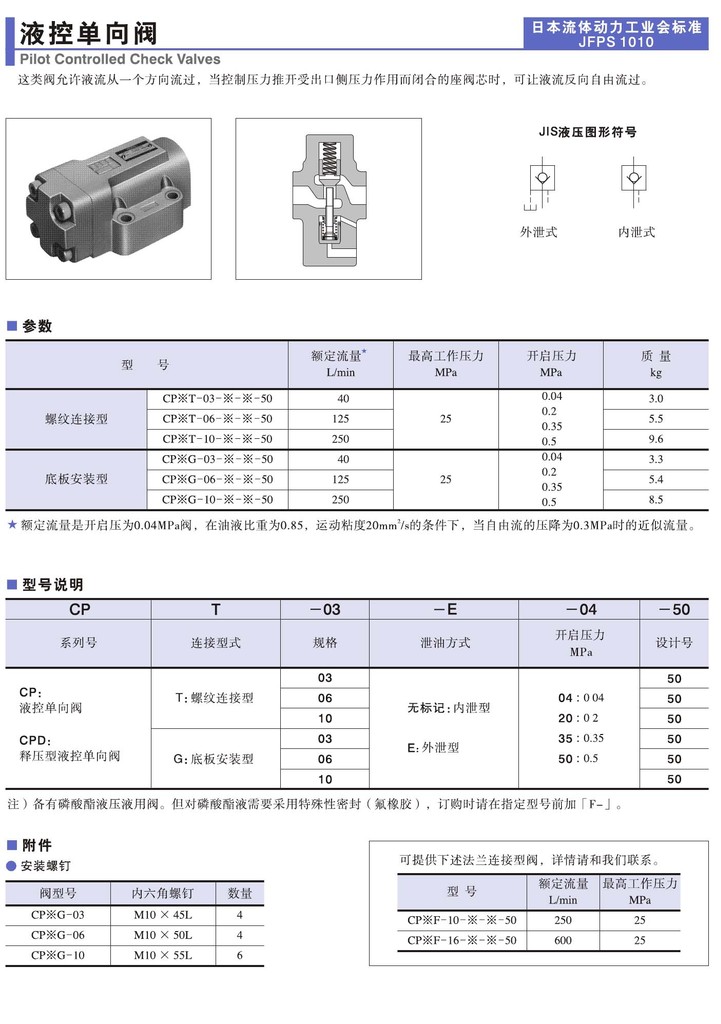 这类阀允许液流从一个方向流过,当控制压力推开受出口侧压力作用而闭合的座阀芯时,可让液流反向自由流过。