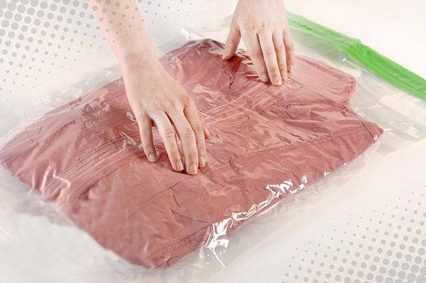 3、密封袋口拉链,将衣物平整装入压缩袋内后,为有效保护衣物达到完全隔离的效果,请用手密合袋口。