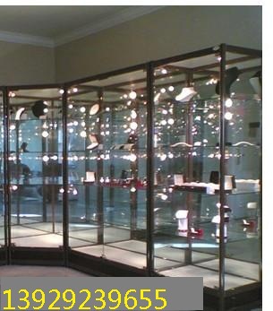 宝贝说明:精品货架组合为钛合金型材和玻璃组合为成,其上灯箱高度为200mm,下边柜子高度为500mm(可做推拉门或对开门),架子两侧为5mm厚玻璃,后背用玻璃、镜子、木板均可,层玻玻璃为8mm-10mm厚玻璃,每层玻璃可任意调节所需用高度。架子可做单体或连体。