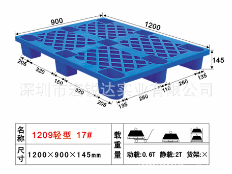 17#网格九脚塑胶卡板1200*900*145 2000/600