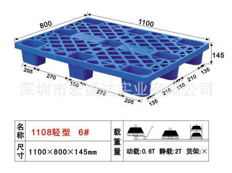 塑胶托盘又称:卡板、托盘、栈板、叉车板。具有环保、免修理、防蛀、防水、整洁美观的特性。适用于货架、超市、仓储、物流等行业。有单面、双面、网格、平板、轻型和货架之分,规格尺寸众多,欢迎咨询!可以代客户加工,
