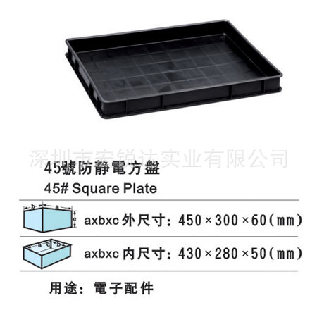 深圳宏锐达防静电周转箱各种规格,以聚乙烯(PP)为基材,加入掺合物,此掺合物可传导电流和具有较强的机械性能,用这种复合材料经传统的注射成型制成的周转箱为防静电周转箱、防静电周转方盘、防静电元件盒、防静电PCB板挂篮等。