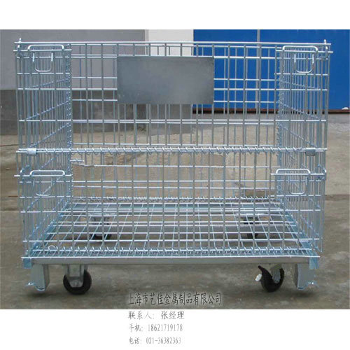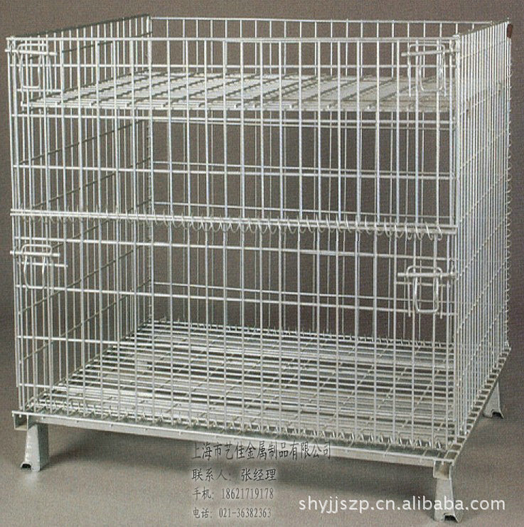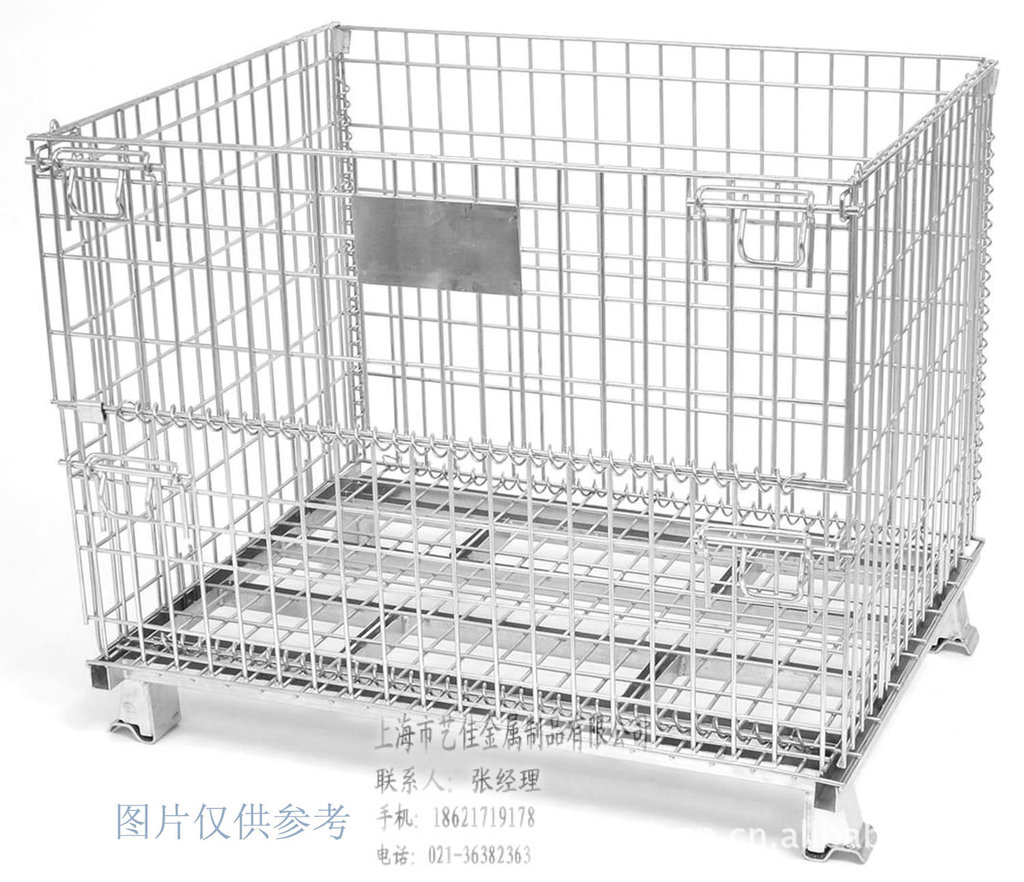 仓储笼(仓库笼)又称储物笼;采用强力钢丝焊接而成,底部以U形焊接补强,强度高、装载能力大、可叠四层、实现仓储的立体化,不同型号、不同规格的折叠式仓储笼(仓库笼)承重为0.8T~2.0T;折叠式结构,装载、周转、存放较为方便。存放规整,易于定置、单元化存储方便管理。仓库笼不使用时可折叠存放,节省空间;折叠式仓储笼(仓库笼)表面镀锌,美观抗氧化,可长期使用。卫生免疫、周转、存放和回收均不污染环境;折叠式仓储笼(仓库笼)适于用叉车、吊车、行车、升降机、台车、液压托盘车等装卸、搬运、堆高,省时省力。折叠式仓储笼(仓库笼)门可打开,不用翻仓即可取用所需之物料。