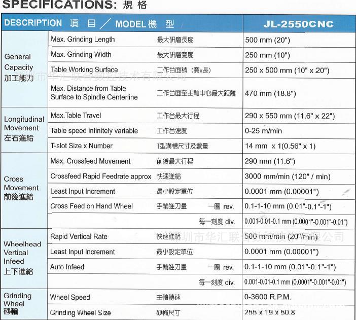 除CNC精密平面磨床外,准力公司系列产品尚有,手动精密成形平面磨床、油压自动平面磨床、三轴全自动平面磨床、三轴全自动Y轴微电脑控制平面磨床、精密CNC成型平面磨床、晶陶加工机、细微沟槽加工机及龙门磨床。