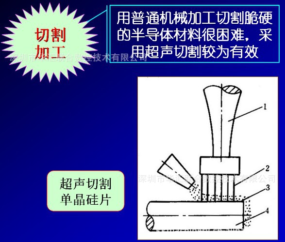 超音波加工也称超声波加工(简称USM),超音波加工不仅能加工金属导电材料,而且更适宜加工玻璃、陶瓷、半导体锗和硅片等不导电的非金属脆硬材料,还可以用于清洗和探伤等。