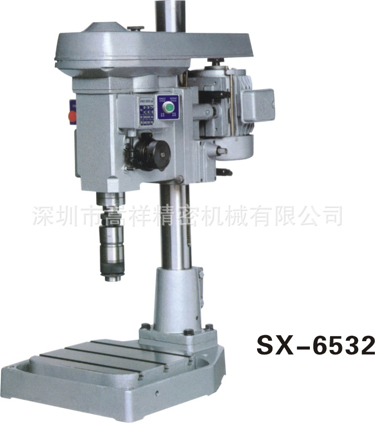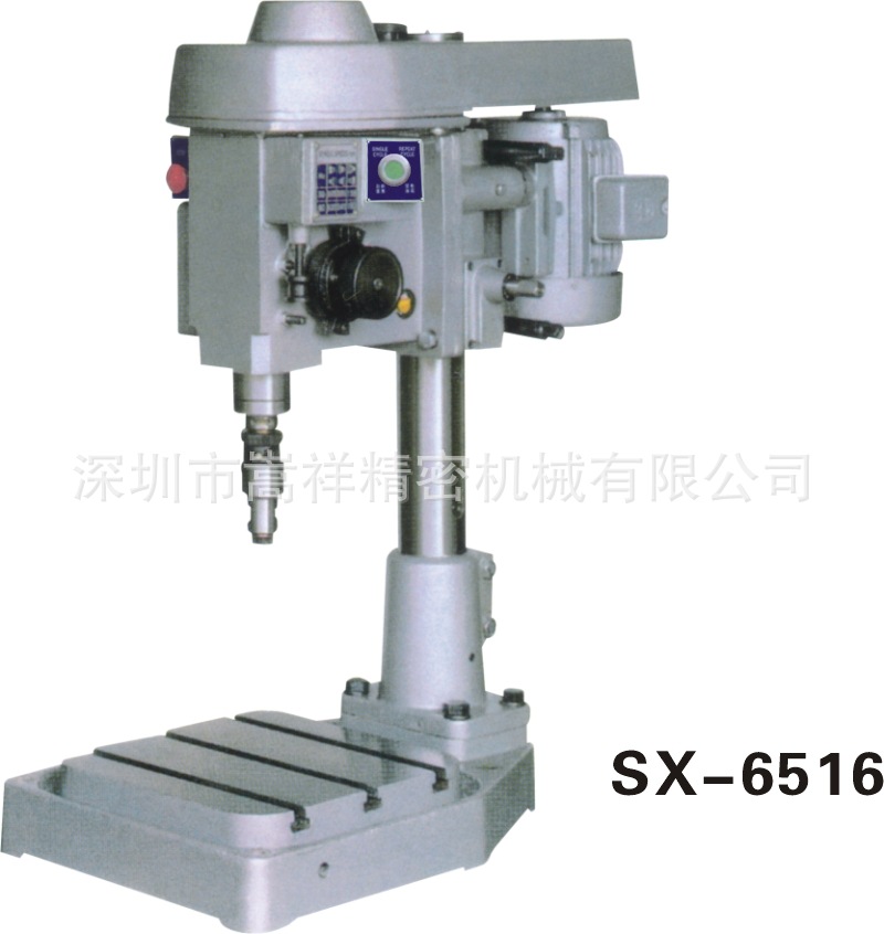特点: 回转---牙距的精密自动输送组合:装置可替换的A · B齿轮配合A · B转轴与主轴依牙距推进完全配合(以往没有这种装置)这种组合有以下特点:1、垂直稳定、精确而安定;精密度相当高,螺丝攻在前进与后退时不必出力就能运转自如,而产制优良的加工物品,不会造成粗细不同的螺纹。对薄板的冲床加工制品或轻合金属,合成树脂等软质制品,也能制成完美的罗纹。绝无品质不稳定或不良现象产生。2、攻牙机加工时加工物品不会往上跳:由回转的主轴带动传送,并不会以手压着加工物,同时加工物也不会往上跳。 3、 操作简便,促进工作效率:加工物品因为不往上跳,所以只要不压住加工物的简单装置,即可发挥最高的工作效率。 操作者的两手可以自由的离开机械:正转→反转→正转→反转……的连续循环和正转→反转→停止的单向循环有特定的按键开关来操作,另外还可以安装脚踏的开关,作选择性的操作,连续循环、单向循环都能自动,操作人员的双手可安全离开机器。 可作高速连续循环运转,坚固耐用:SX-4508 型边续循环运转每分钟40回,可以高速连续的操作,坚固而耐用,特别使用本公司自制的电子按键开关和特殊马达能耐用一千万转次。初学者也可以顺利的操作:单动连续均可自动循环运转,作业者的两手可完全离开机械,只要供应加工物品,初学者和熟练者的作业效率相同。高精度攻牙行程调整简单:自动反转装置,能自由调整攻牙行程,浅孔和有孔底加工物,也很容易调整。 二重安体装置防止螺丝攻之折损:主轴回转与上下、进退刀具,特设二重安全离合器,主轴能自动停止,逆转退回并不损耗刀具。多轴攻牙器的装置能产生高效率作业:可装置多轴攻牙器,生产效率高。