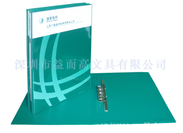 材质:半包胶文件夹封面为黑色PVC胶料,内衬为100克书纸过光膜,包1500克灰板,钉底片,配快劳铁夹,配压指条,文件夹封面丝印1色LOGO及公司名, 同时背脊有拉一背窗,可插入重要标题易识别查找, 胶料色别多样. 功能: 用于企业内部办公文件的存档及管理