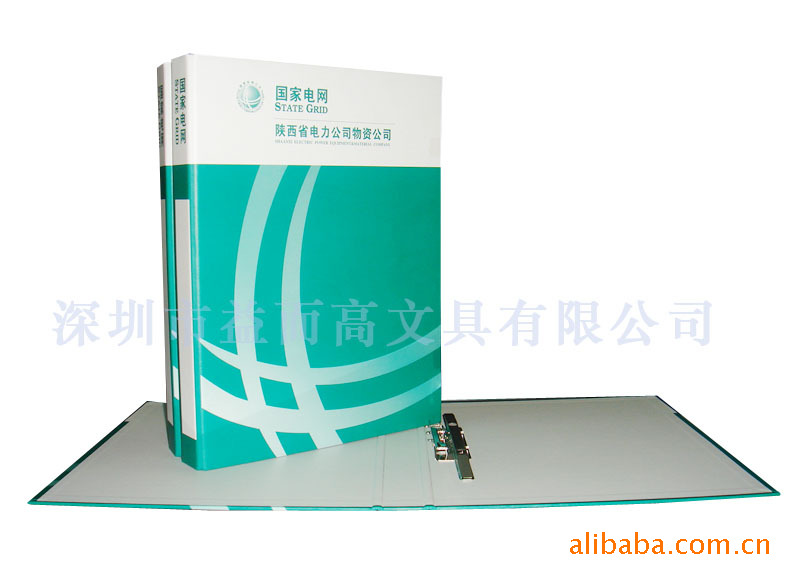 材质:四川电力文件夹采用优质环保PVC胶料包1500克灰纸板,文件夹封面压有一层透明PVC胶料,方便插入国家电网标志印刷纸,翻开文件夹左边顶部钉钢线夹,右边居中钉8寸强力夹,方便装入不能打孔的重要资料,用于企业内部办公文件的存档及管理